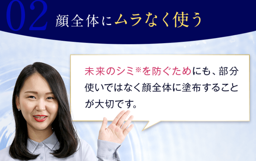 化粧水で肌を整えたあとに使用し、その後クリームを使います。(オールインワンをご使用の方は、お手入れの最初に使用してください。)
